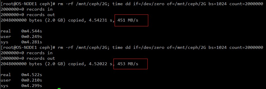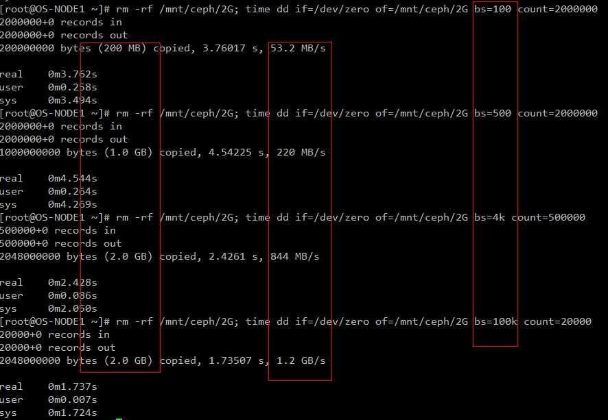 [root@OS-NODE1 ~]# rbd map foo --pool nova --keyring /etc/ceph/ceph.keyring [root@OS-NODE1 ~]# rbd showmapped id pool image snap device 1 nova foo - /dev/rbd1 [root@OS-NODE1 ~]# mkfs.xfs -d agcount=4 -l size=32m /dev/rbd1 [root@OS-NODE1 ~]# mount /dev/rbd1 /mnt/ceph/